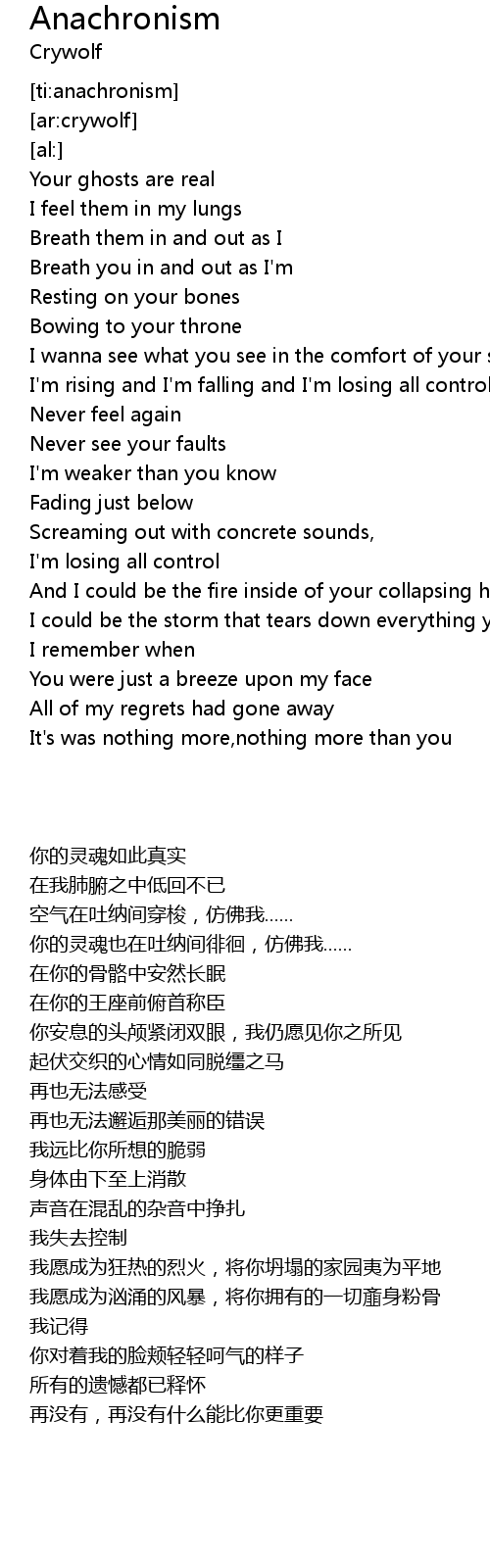 | [01:04.33] | I'm rising and I'm falling and I'm losing all control |