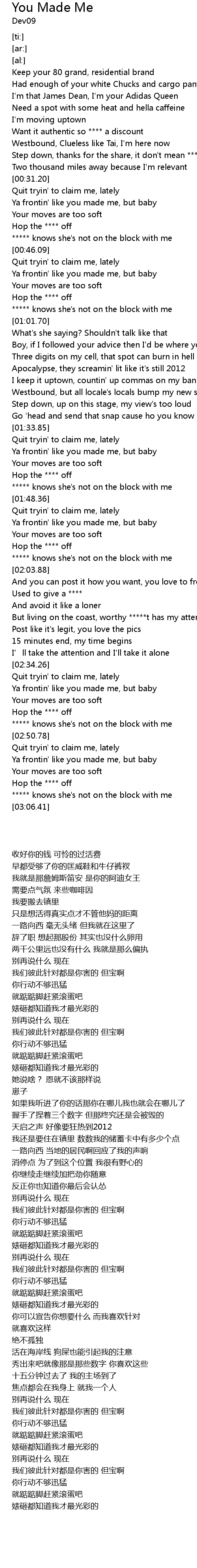 | [00:34.72] | Ya frontin' like you made me, but baby |