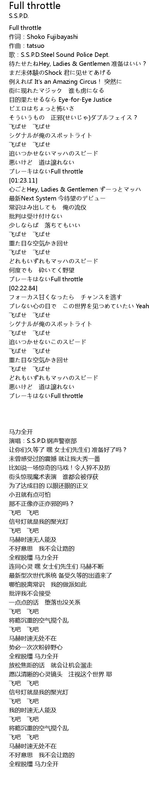 | [01:18.22] | ブレーキはないFull throttle |