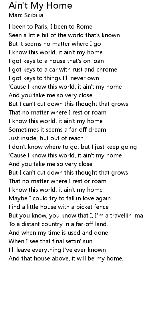 I know this world, it ain't my home |