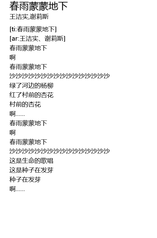 | [00:30.94] | 沙沙沙沙沙沙沙沙沙沙沙沙沙沙沙沙 |