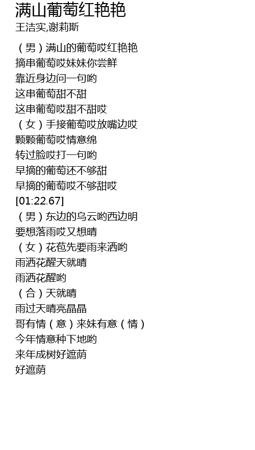 | [00:53.08] | 颗颗葡萄哎情意绵 |