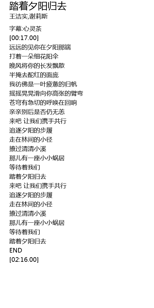 | [00:19.00] | 远远的见你在夕阳那端 |