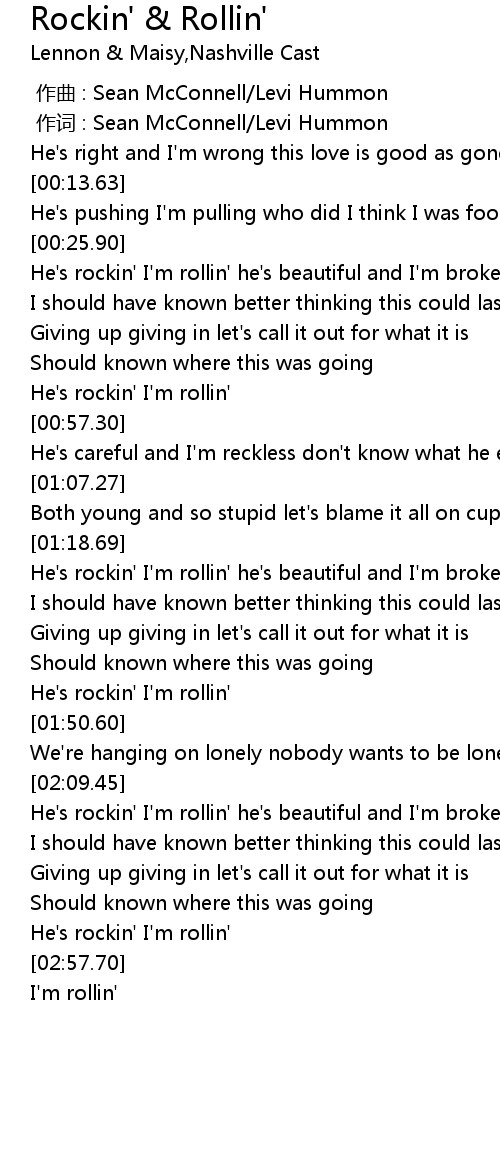 | [02:50.65] | He's rockin' I'm rollin' |