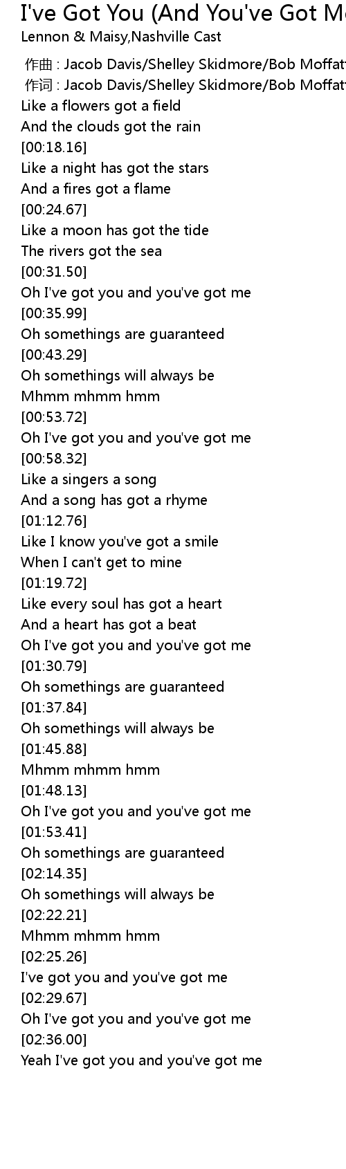 | [02:37.92] | Yeah I' ve got you and you' ve got me |