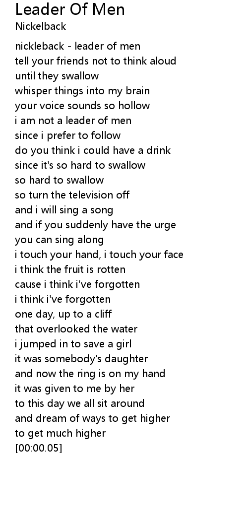 [00:09.71] nickleback - leader of men