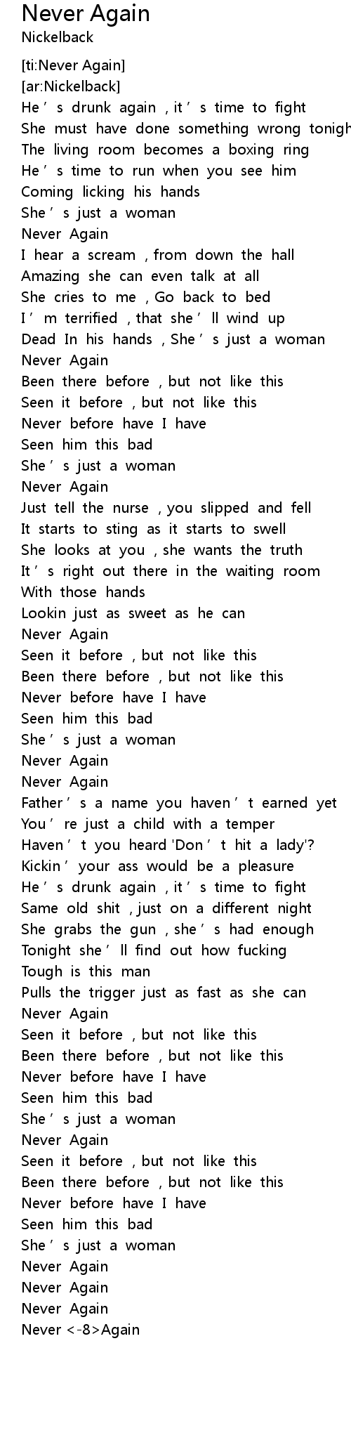| [02:04.11] | Never Again |