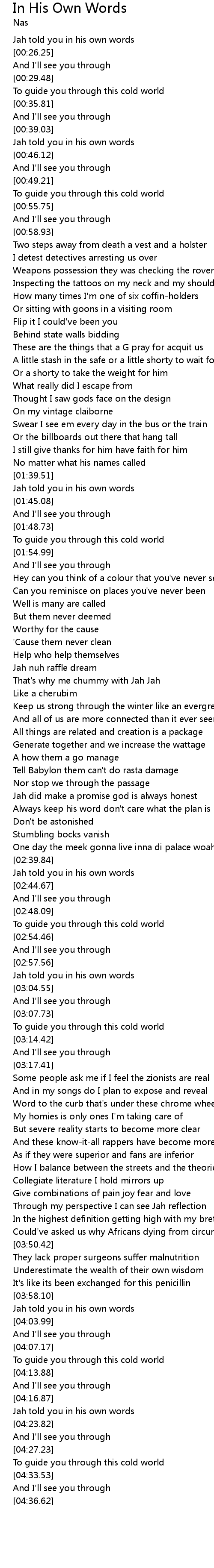 [03:00.41] Jah told you in his own words