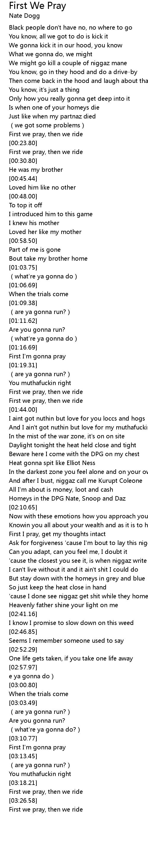 | [01:24.38] | First we pray, then we ride |