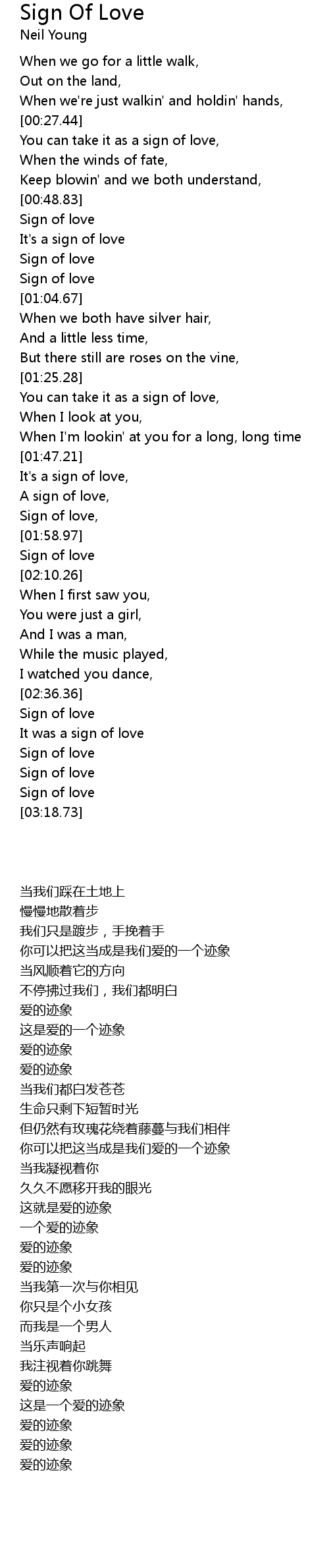 Sign of love, |