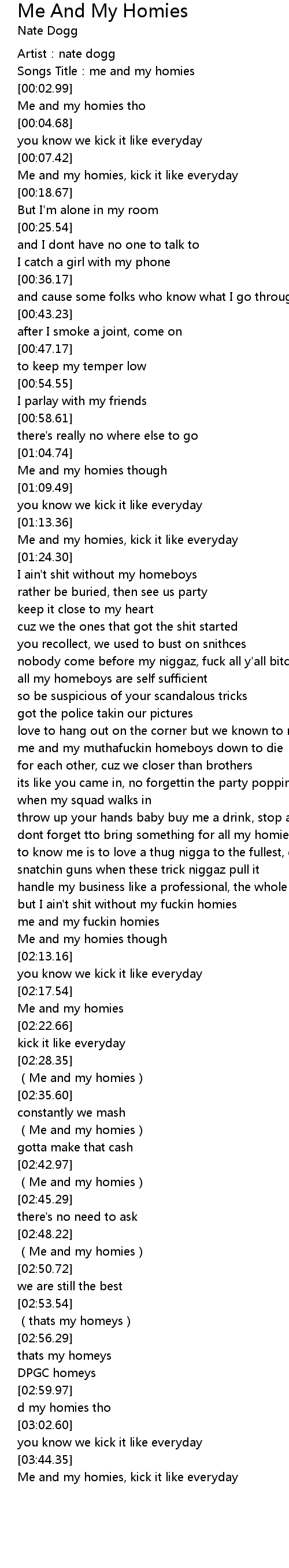| [03:48.47] | Me and my homies, kick it like everyday |