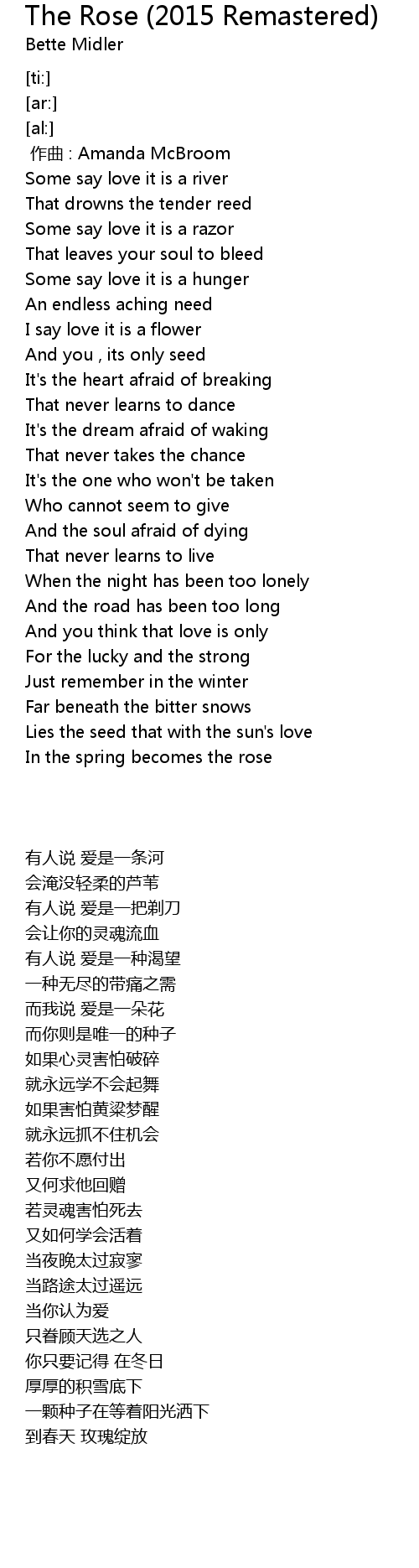 | [00:00.00] | 作曲 : Amanda McBroom |