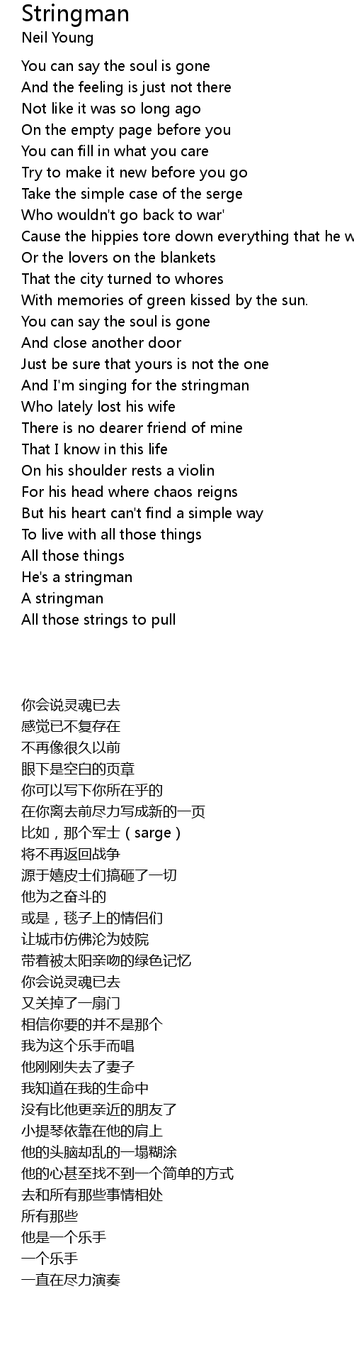 And I'm singing for the stringman |