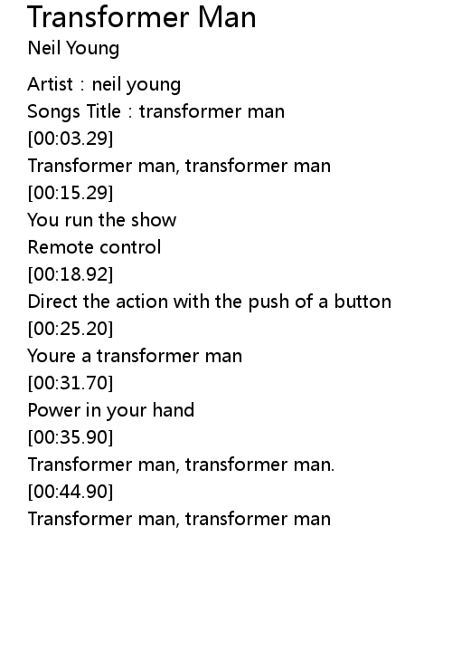| [00:46.65] | Transformer man, transformer man |