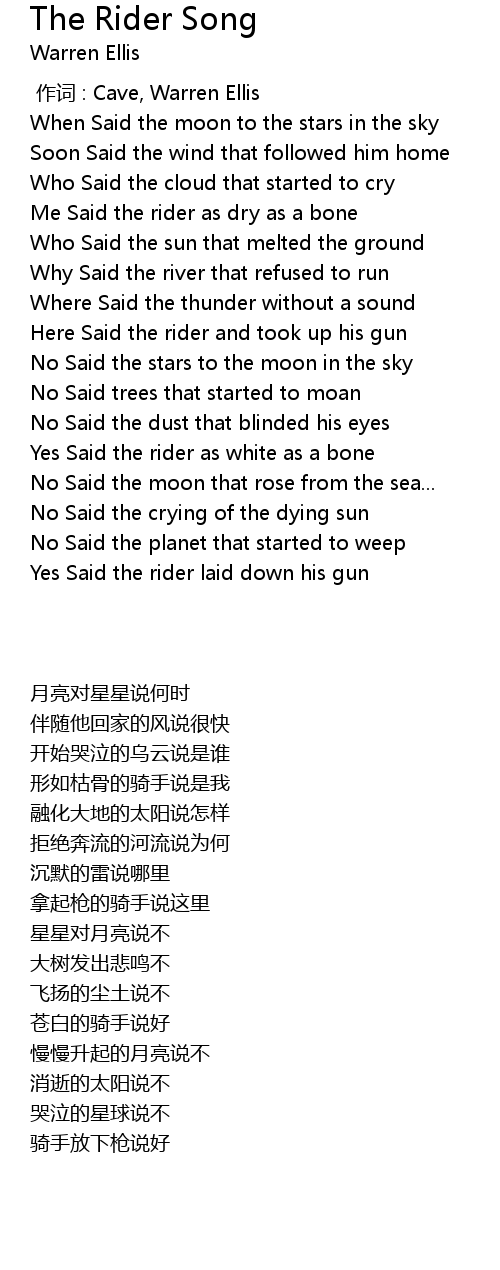 | [00:00.00] | 作词 : Cave, Warren Ellis |