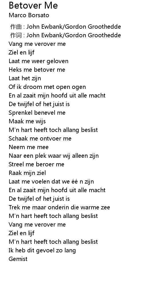 | [00:01.00] | 作词 : John Ewbank/Gordon Groothedde |