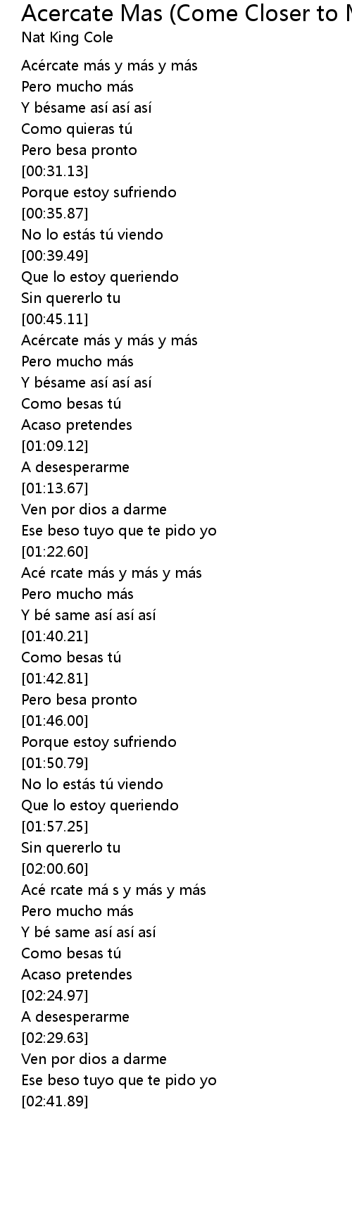 | [02:34.34] | Ese beso tuyo que te pido yo |