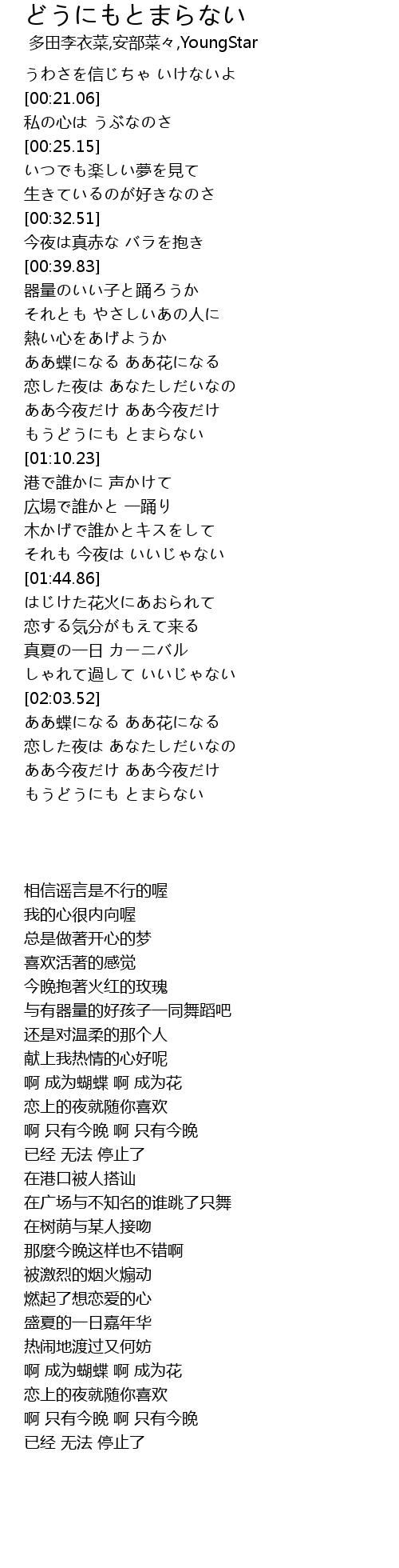 | [02:19.29] | もうどうにも とまらない |