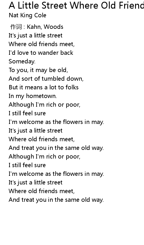 | Song | A Little Street Where Old Friends Meet |
