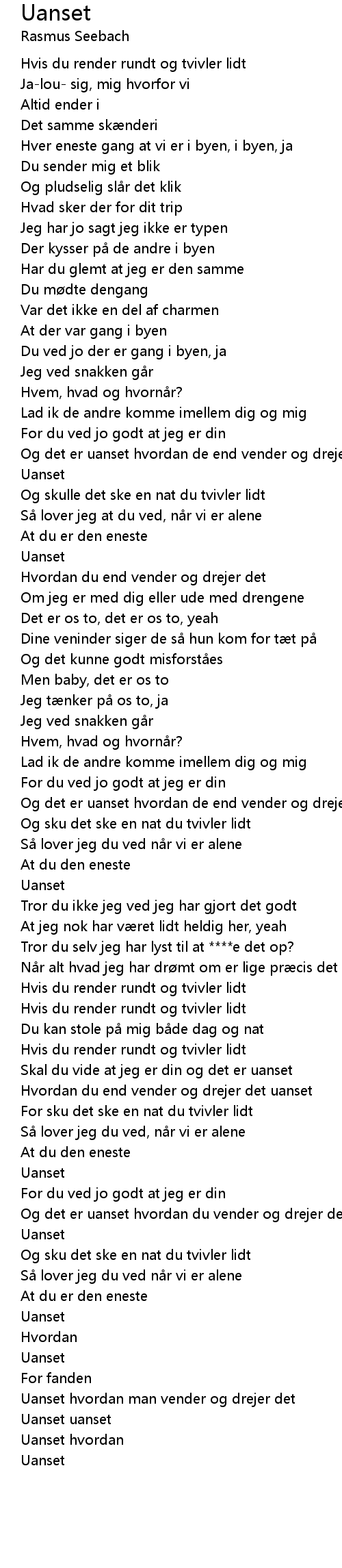 | [2:43:00] | Skal du vide at jeg er din og det er uanset |