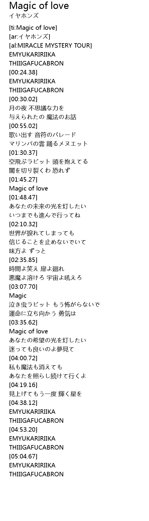| [00:45.58] | 与えられたの 魔法のお話 |