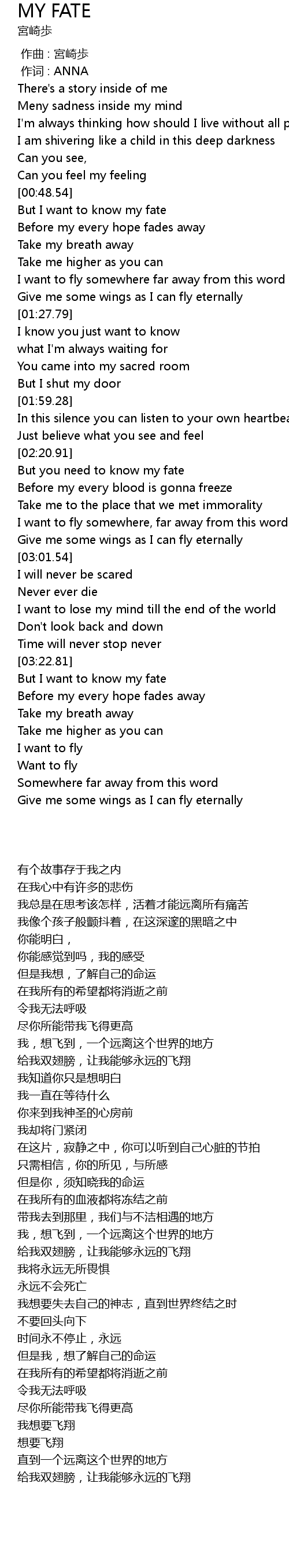 | [02:50.70] | Give me some wings as I can fly eternally |