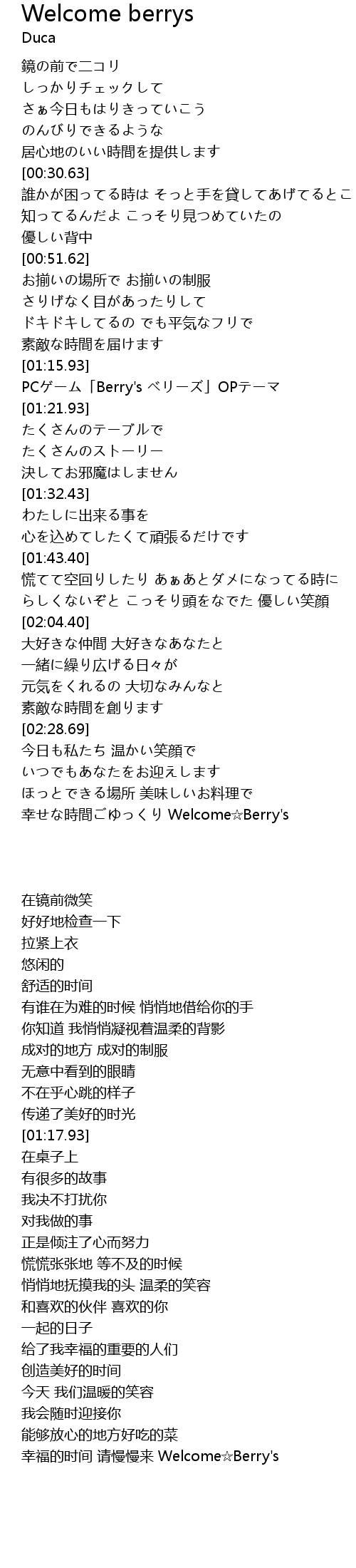 | [03:15.07] | 幸せな時間ごゆっくり Welcome☆Berry's |