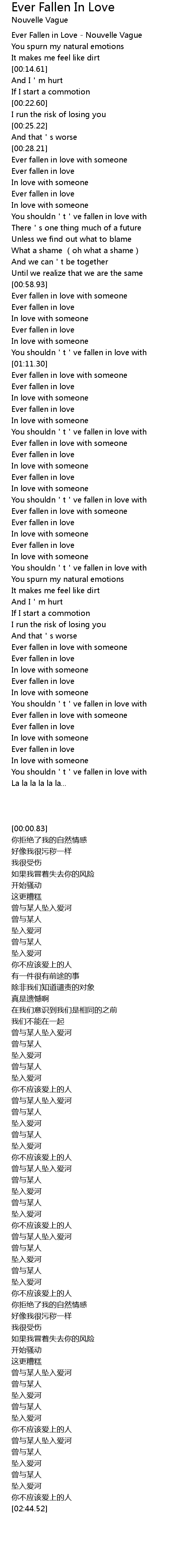 | [00:00.83] | Ever Fallen in Love - Nouvelle Vague |