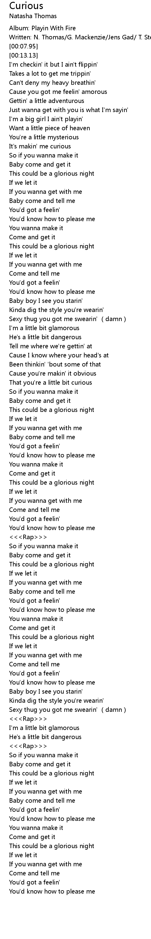 | [00:03.89] | Written: N. Thomas/G. Mackenzie/Jens Gad/ T. Stenezl/Rap: Triple C |