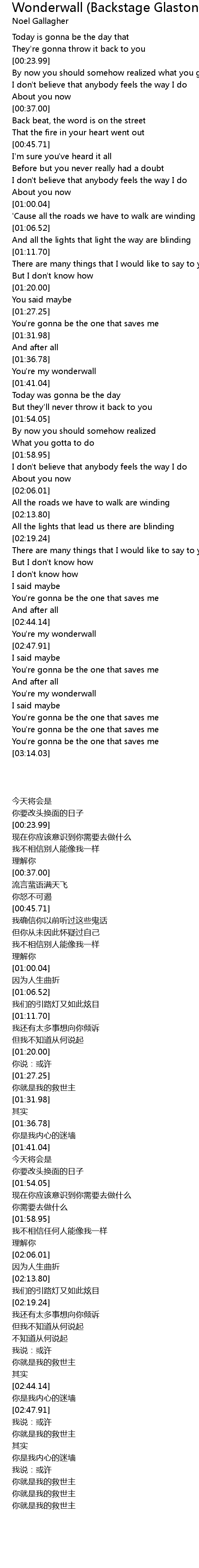 Wonderwall (Backstage Glastonbury 24th June 1995) Lyrics