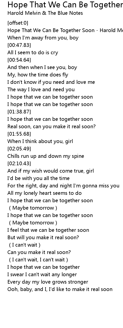 | [00:01.19] | Hope That We Can Be Together Soon Harold Melvin |