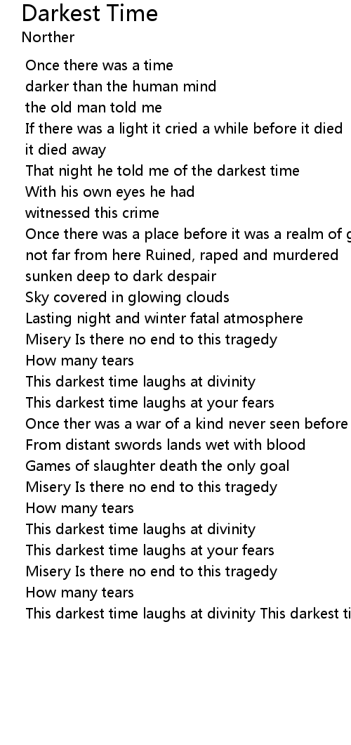 | This darkest time laughs at divinity This darkest time laughs at your fears |