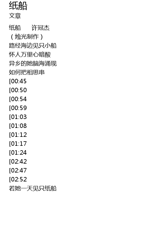 [02:00][00:45] shí qǐ zhāng zhǐ zhé zhǐ xiǎo chuán