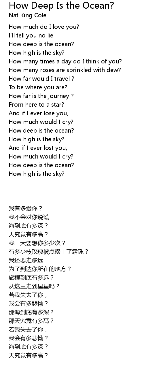 | Song | How Deep Is the Ocean? |