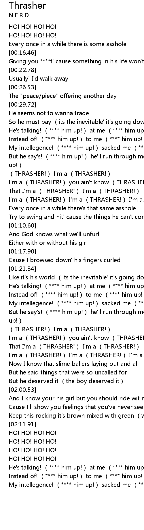 | [00:50.72] | I'm a (THRASHER!) you ain't know (THRASHER!) |