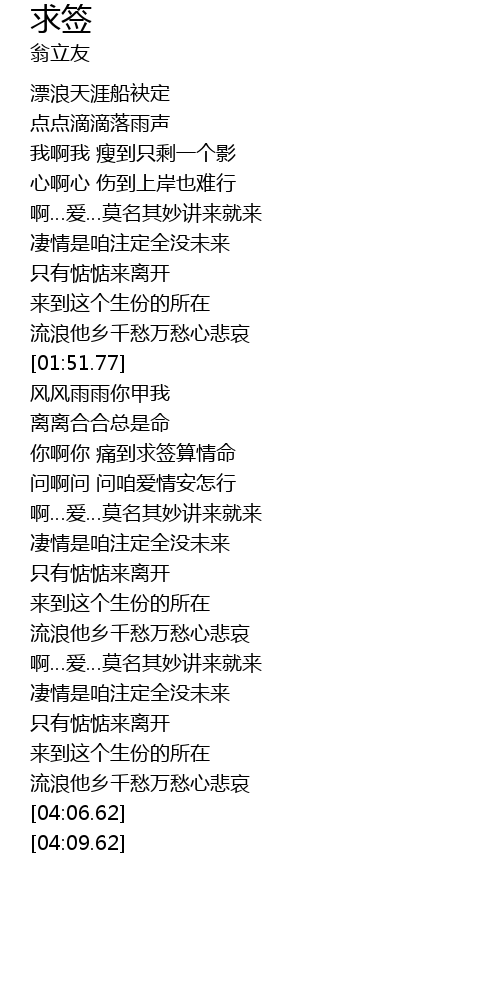 | [02:30.15] | 你啊你 痛到求签算情命 |