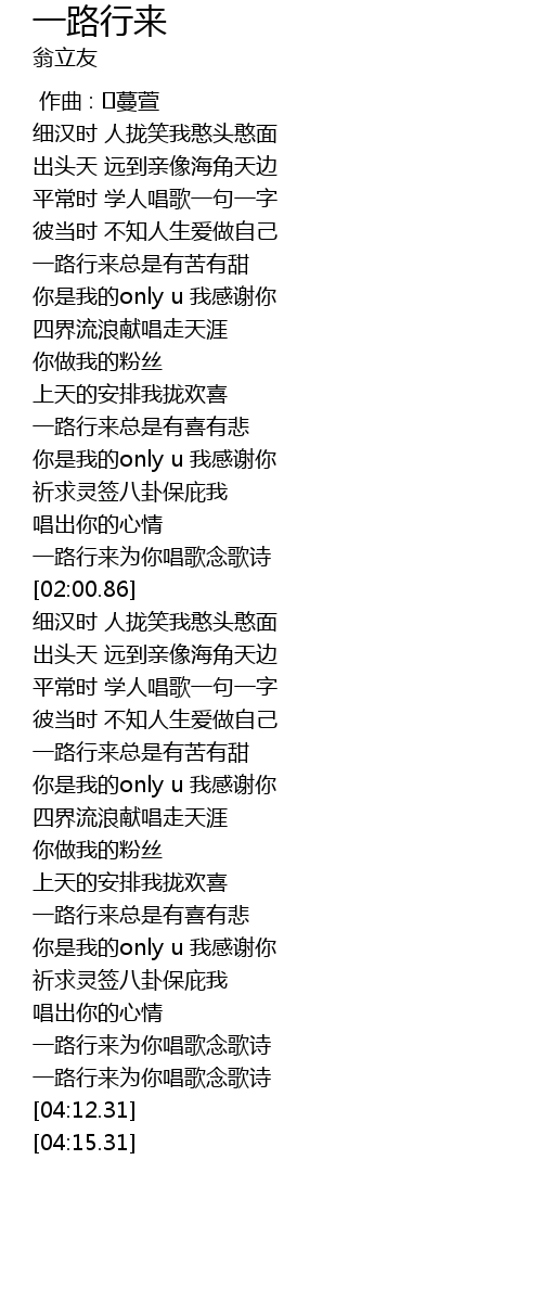 | [03:53.34] | 一路行来为你唱歌念歌诗 |