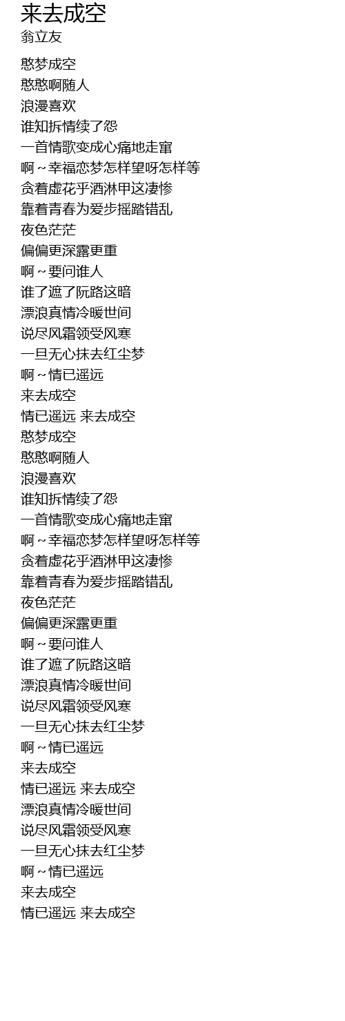 | [01:46.16] | qíng yǐ yáo yuǎn lái qù chéng kōng |