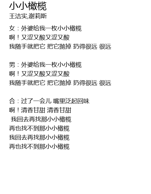 | nan: wai po gei wo yi mei xiao xiao gan lan | |