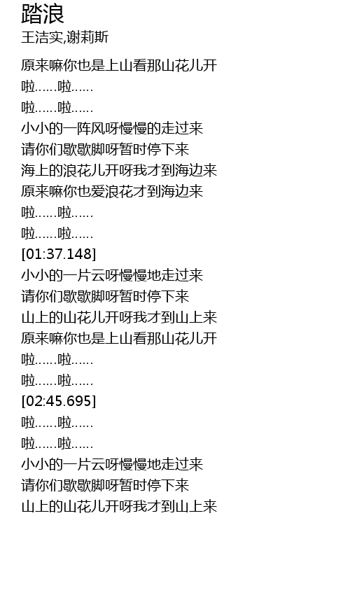 | [00:55.750] | 原来嘛你也爱浪花才到海边来 |