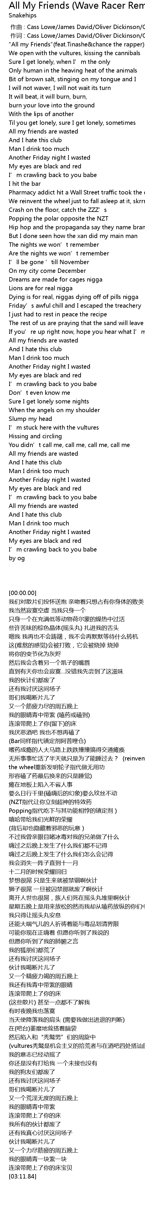 | [00:44.13] | All my friends are wasted |
