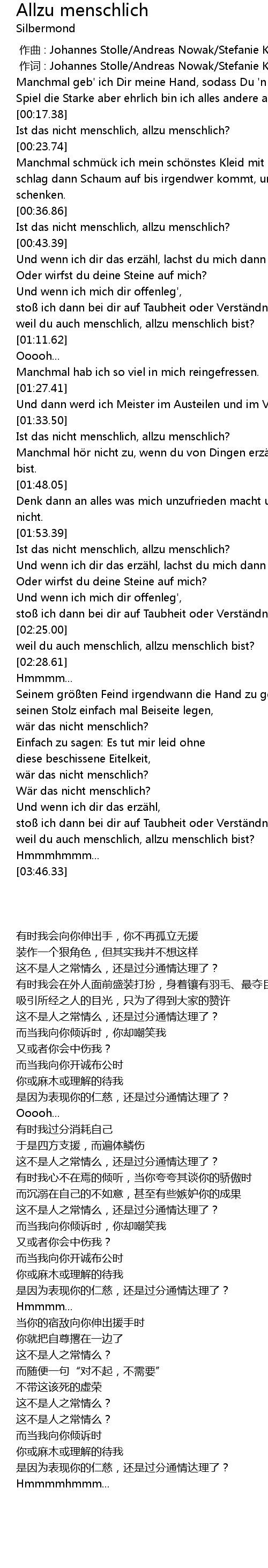 | [03:36.55] | weil du auch menschlich, allzu menschlich bist? |