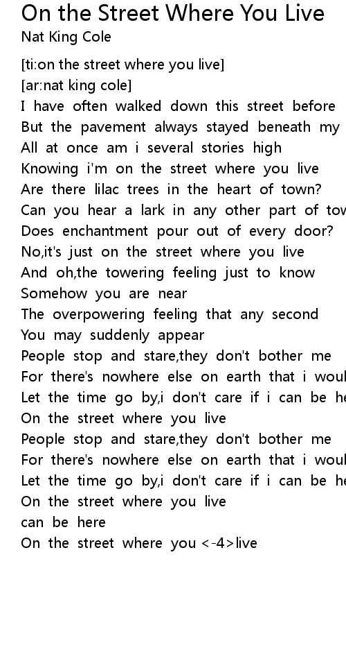 [ti:on the street where you live] |