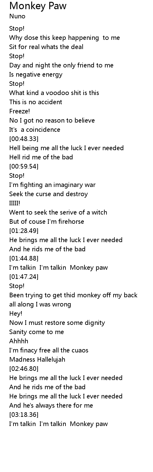 I'm talkin I'm talkin Monkey paw |