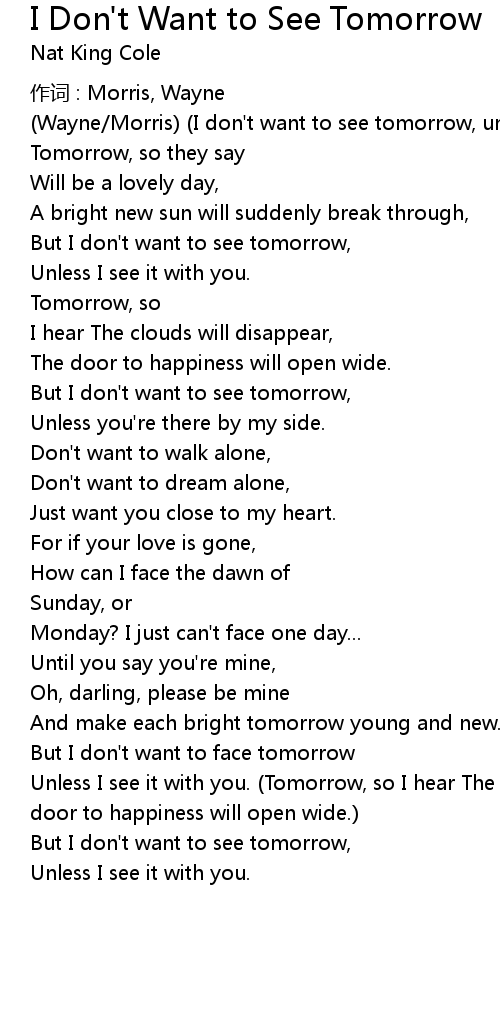 | But I don' t want to see tomorrow, | |