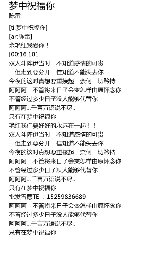 | [02:45.328] | 只有在梦中祝福你 |