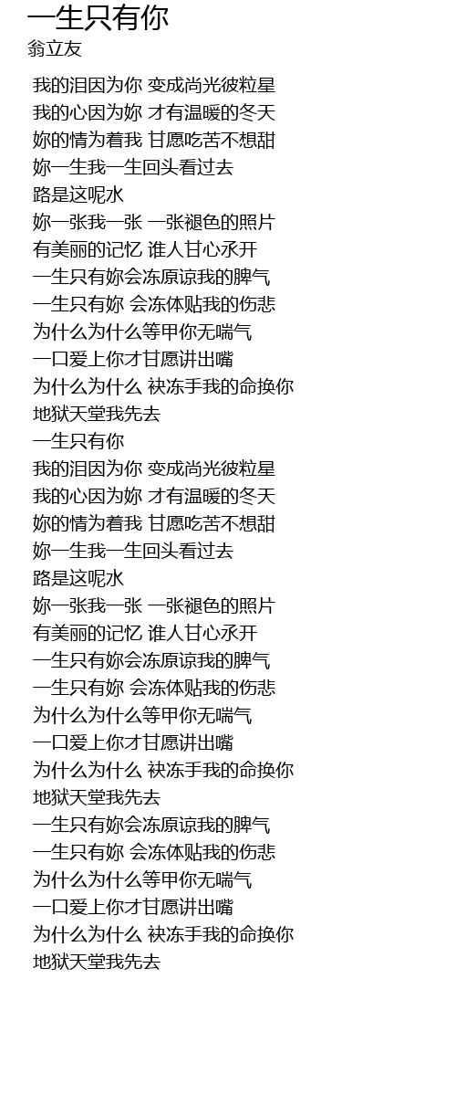 | [03:44.219] | 一生只有妳 会冻体贴我的伤悲 |