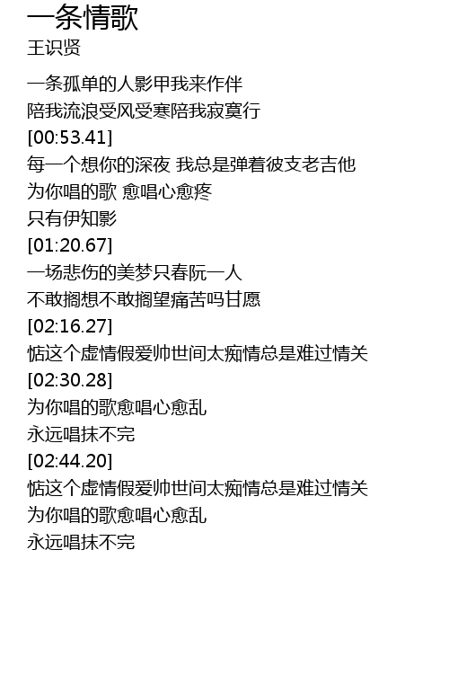 | [00:42.18] | 陪我流浪受风受寒陪我寂寞行 |