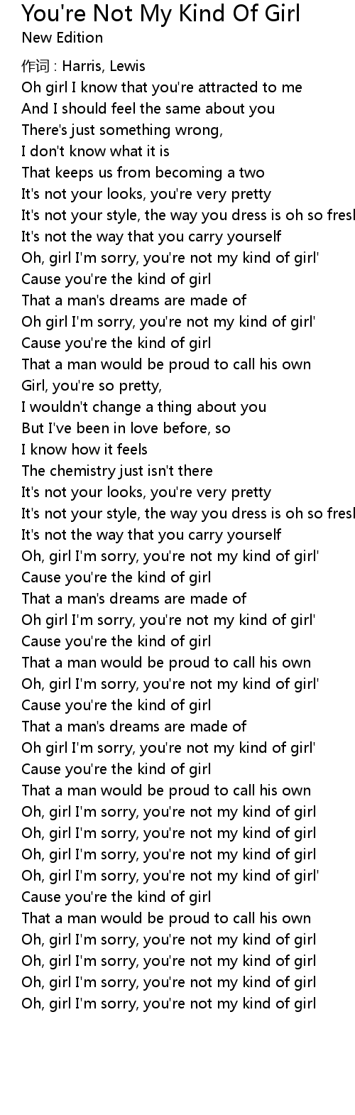 | Oh girl I' m sorry, you' re not my kind of girl' | |