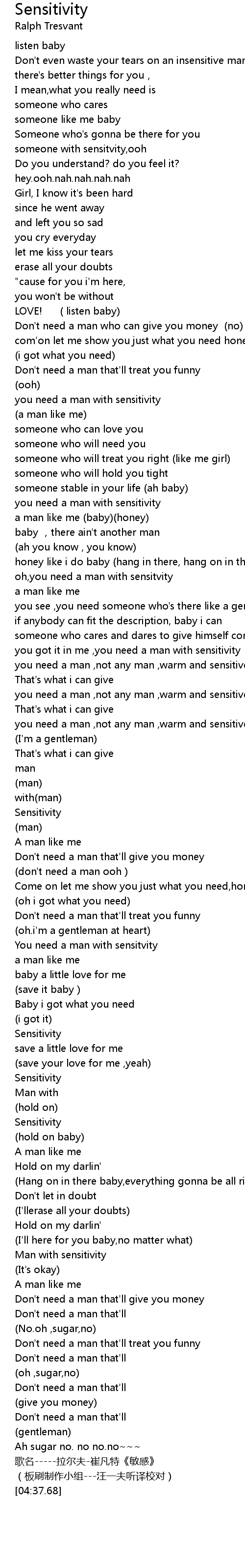 | [04:11.64] | Man with sensitivity |